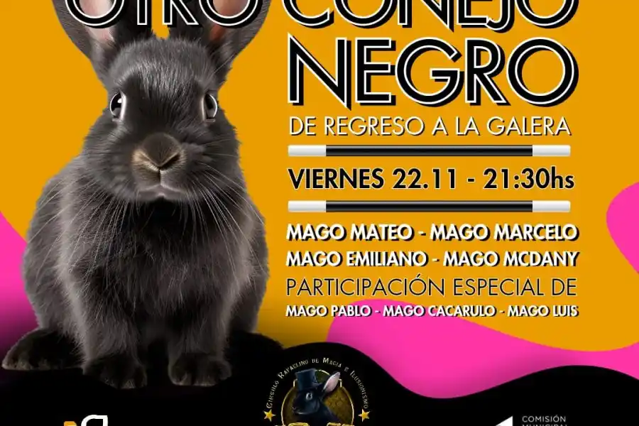 El próximo 22 de noviembre, el espacio cultural Planta (calle Reconquista 697) será el escenario de una noche mágica e inolvidable con la presentación de "Otro Conejo Negro en Planta", un evento que promete deslumbrar a los amantes del ilusionismo y la sorpresa. La cita es a las 21:30 horas, y será una oportunidad única para disfrutar de lo mejor que tiene para ofrecer el Círculo Rafaelino de Magia e Ilusionismo.