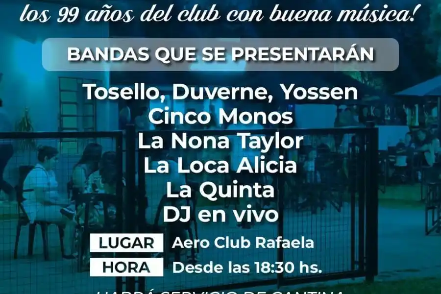 Este sábado 23 de marzo se vivirá con todo la “Aerofest”, a pura música y aviación. El Aeroclub de la ciudad de Rafaela estará celebrando sus 99 años con una hermosa propuesta.