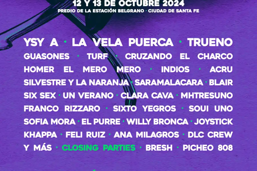 Dos días a pura música y todos los géneros, pasando desde el rey del trap y dueño de los sismos YSY A, nuestros vecinos uruguayos La Vela Puerca, uno de los líderes del rap nacional Trueno hasta el príncipe de los hits Turf y los platenses Guasones y Cruzando el Charco. El ansiado regreso a los escenarios de Indios, más referentes de la escena urbana como Acru, Saramalacara y Homer el Mero Mero también forman parte de esta entrega del festival.