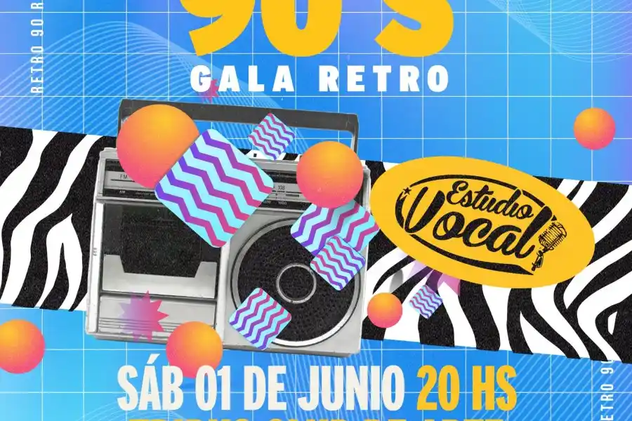 SÁBADO 1 DE JUNIO A LAS 21 HS: el Estudio Vocal Santa Fe presentará la "Gala Retro Back To The 90's", en el que celebrarán los éxitos que marcaron a toda una generación en los años 90. Entradas a la venta en boletería y a través de Ticketway.
