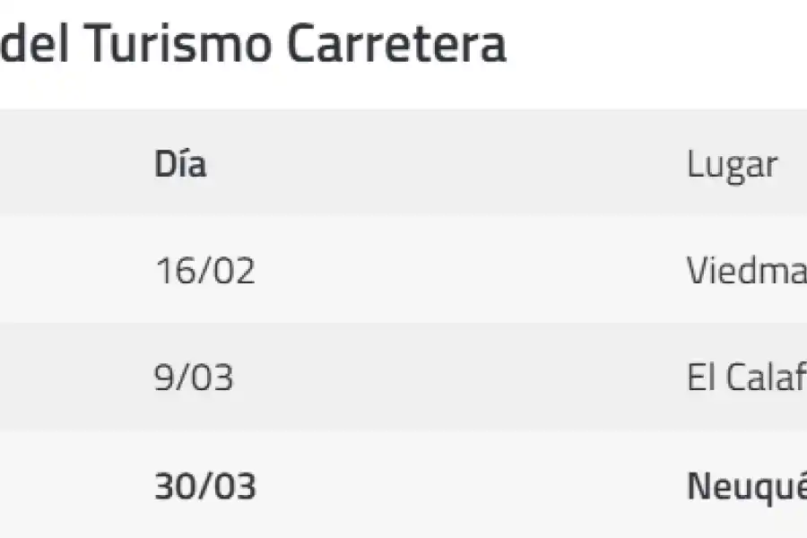 Viedma volverá a ser sede de la apertura del torneo el 15 y 16 de febrero y la 2ª fecha se disputará el 8 y 9 de marzo en El Calafate. En tanto que, la 3ª cita del certamen, será el 29 y 30 de marzo en Centenario (Neuquén), fin de semana en el que la “máxima” compartirá escenario con el novel Turismo Carretera 2000.