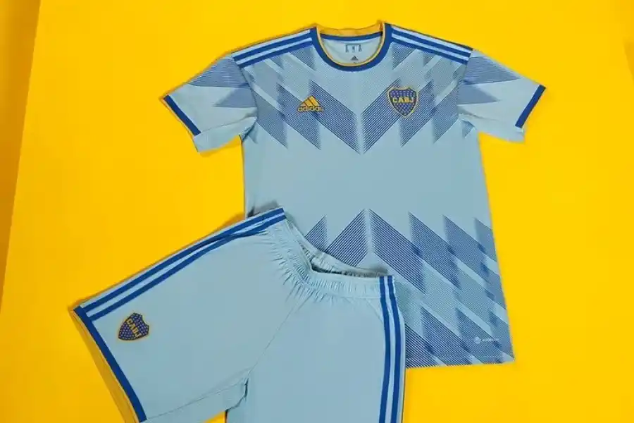 La nueva camiseta de Boca, de base celeste que trae como recuerdo una de las primeras que visitó el club en sus primeros años, incorpora una trama azul que representa la icónica estructura y su correspondiente reflejo en el agua. En el interior del cuello se incluye una ilustración que también remite a la inspiración de la prenda. Por su parte, el cuello redondo y los puños presentan los clásicos colores azul y oro de Boca. El uniforme se completa con shorts y medias a tono.