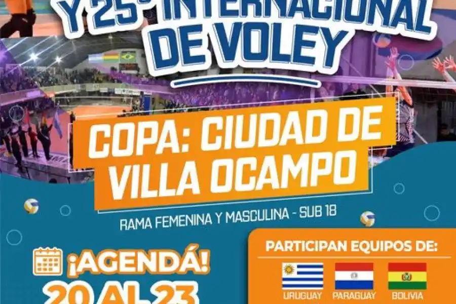 Del 20 al 23 de julio se llevará a cabo el Campeonato Interprovincial e Internacional de Vóley "Copa Ciudad de Villa Ocampo", organizado en forma conjunta por la Asociación Bomberos Voluntarios y la Municipalidad de Villa Ocampo.