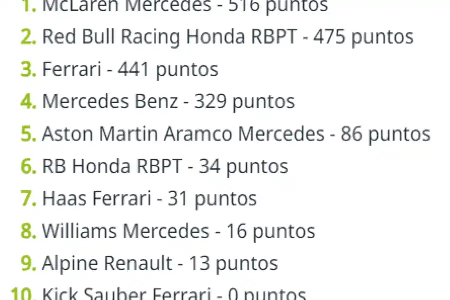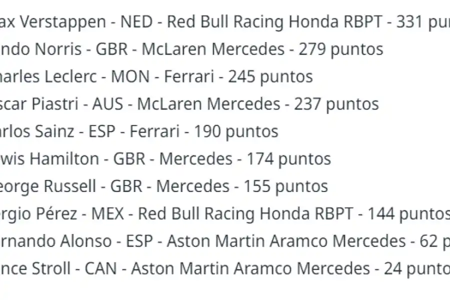Por su parte, el argentino Franco Colapinto había adelantado tres posiciones en la largada en la que arrancó 12°, pero finalizó onceavo y no pudo sumar puntos. Más allá de quedarse en la antesala para la sumatoria de puntos, se destaca su labor aquí en Singapur, teniendo en cuenta que su compañero de escudería, Alex Albon, no pudo terminar la carrera.