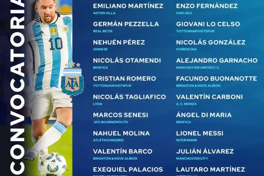 Entre los ausentes hay varios campeones del mundo en Qatar 2022, ya que padecen distintas lesiones, como Lisandro Martínez, Gonzalo Montiel, Marcos Acuña y Guido Rodríguez.