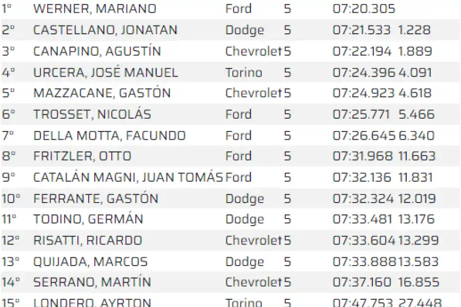 Se puso en marcha la primera serie con Werner en la posición de privilegio, escoltado por Castellano, Mazzacane, Canapino y Urcera. Mientras que en el fondo hacía un trompo Londero.