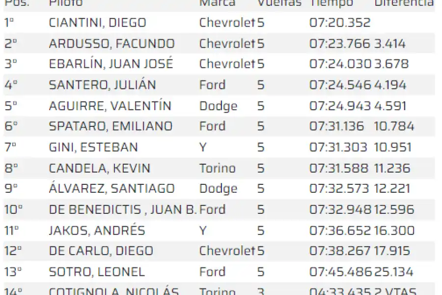 En definitiva, fue victoria para Ciantini en la segunda serie del TC en Rafaela. Segundo fue Ardusso, tercero Ebarlín, cuarto Aguirre y cerró el top five Valentín Aguirre.