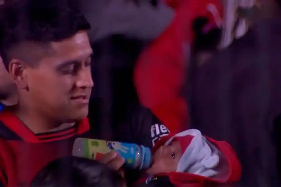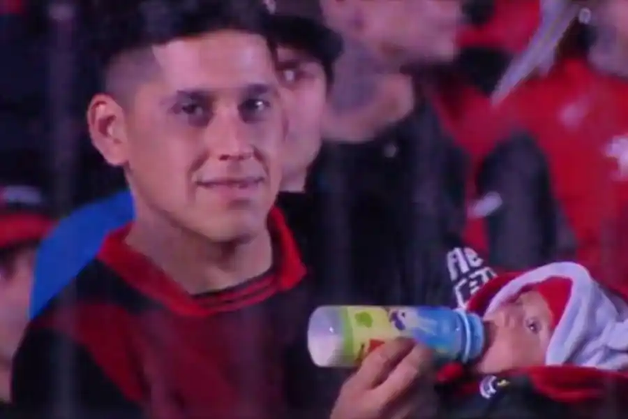 Toto Iñíguez va por el galardón al "Mejor Hincha" después de aparecer en cámara dándole la mamadera a su hijo en plena tribuna del sabalero