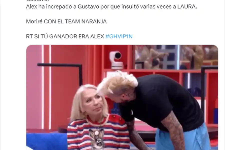 Rápidamente, en las redes sociales reaccionaron ante la abrupta salida de Alex del "GH VIP", y explicaron las razones de la máxima sanción. "Alex Caniggia expulsado disciplinariamente, por increpar y golpear a Gustavo. Alex ha increpado a Gustavo porque insultó varias veces a Laura (Bozzo, la mítica presentadora de TV)", reveló una usuaria en X.