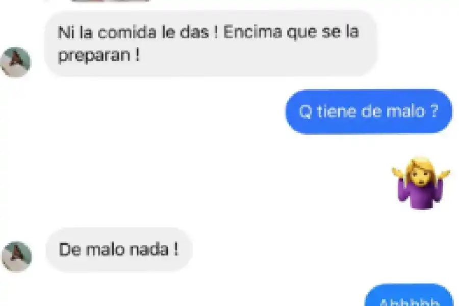 “Ni la comida le das... ¡Encima que se la preparan!”, le dijo una seguidora por privada. La modelo respondió: “¿Qué tiene de malo?”, junto al emoji que expresa no entender la situación. “De malo, nada”, le responde la usuaria.
