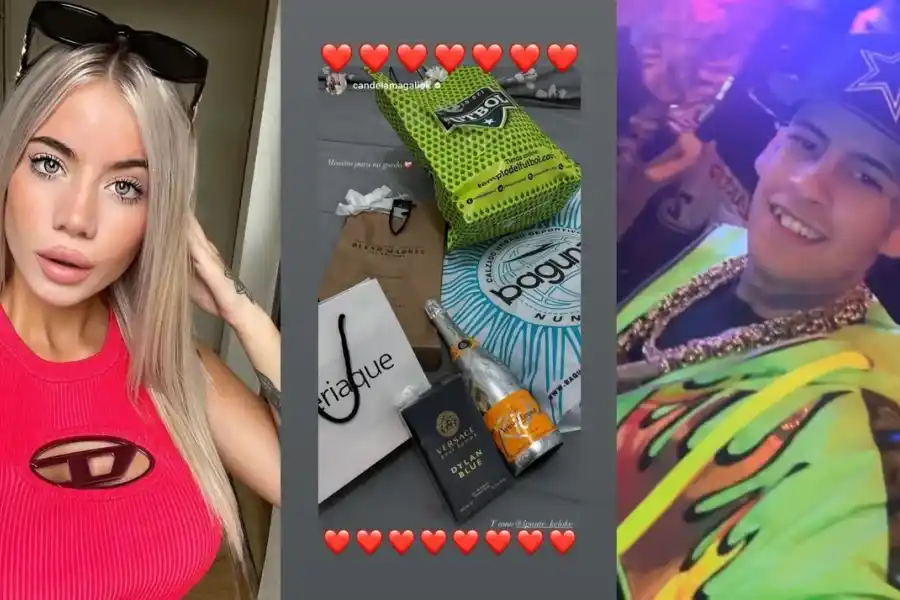 Claro que uno de los mensajes más destacados en sus historias virtuales fue el reposteo del saludo de su actual novia, Candela Arizaga, en el que le declaró todo su amor bajo la frase "mimitos para mi gordo", junto a 6 costosísimos regalos. Entre ellos, champagne y perfume importados.