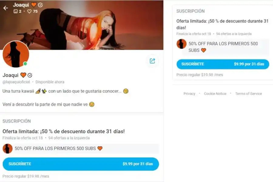 En la plataforma, la artista anticipó el tipo de contenido que subirá: “Una turra kawaii con un lado que te gustaría conocer... Vení a descubrir la parte de mí que nadie ve”. A modo de promoción, los primeros 500 suscriptores recibirán un 50% off de descuento y pagarán $9.99 dólares por 31 días. El precio regular para acceder a las fotos y videos de La Joaqui es de $19.98 dólares al mes.