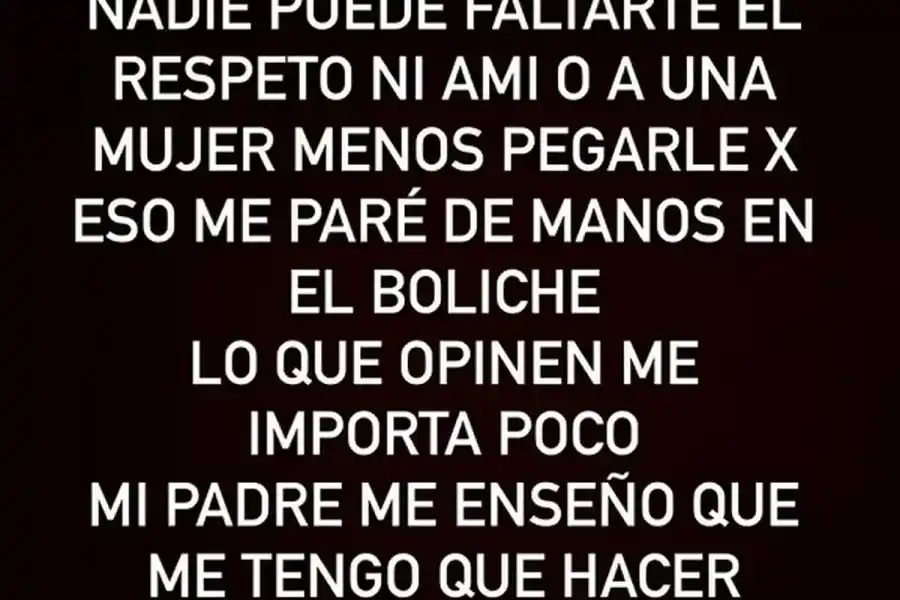Luego, Emmanuel Noir subió un descargo a su cuenta de Instagram y comentó su firme postura ante lo sucedido: "Ajeno a mi trabajo nadie puede faltarte el respeto ni a mí o a una mujer menos pegarle, por eso me paré de manos en el boliche", explicó el artista.