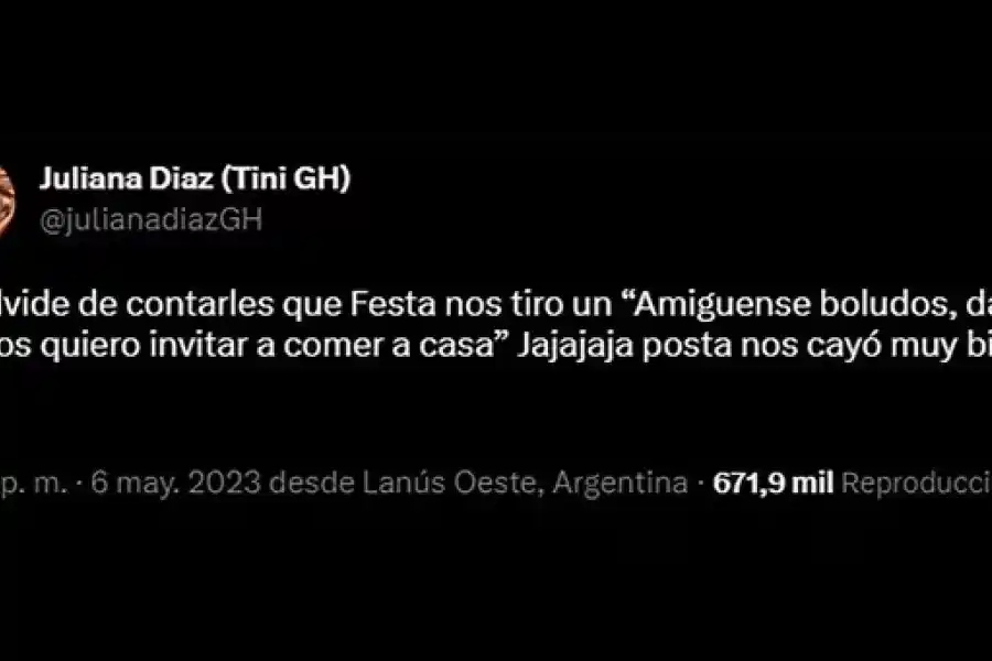 En este festejo, Romina presentó por primera vez a su marido, Walter Festa. El exintendente de Moreno les hizo un pedido muy especial a los mediáticos, según reveló Juliana en su cuenta oficial de Twitter. “Me olvidé de contarles que Festa nos tiró: ‘amíguense boludos, dale que los quiero invitar a comer a casa’. Jajajaja”, señaló. Luego agregó que les había caído muy bien a todos.