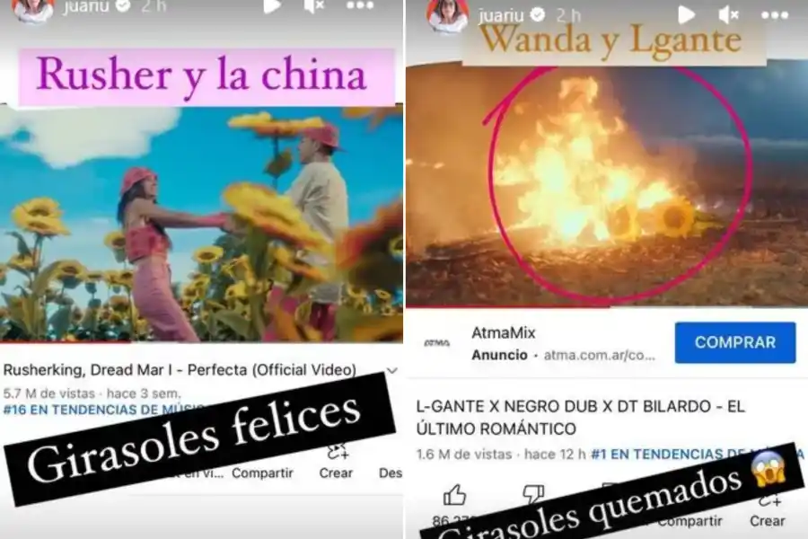 Sí “La China” y Rusherking ponen girasoles, Wanda y L-Gante tienen que hacer algo con eso, y parece que la mejor idea que se les ocurrió fue “prenderlos fuego”. Sí, así como leen.