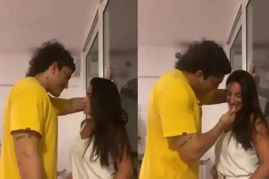En la grabación de TikTok podemos ver a ambos imitando una escena de celos de una pareja, el joven musculoso le reclama a su mamá por otro hombre. “Vos gustas de mi, esa boquita es mía”, es la parte final que dice Tomás Holder mientras agarra la cara de Gisela y se acerca un poco.