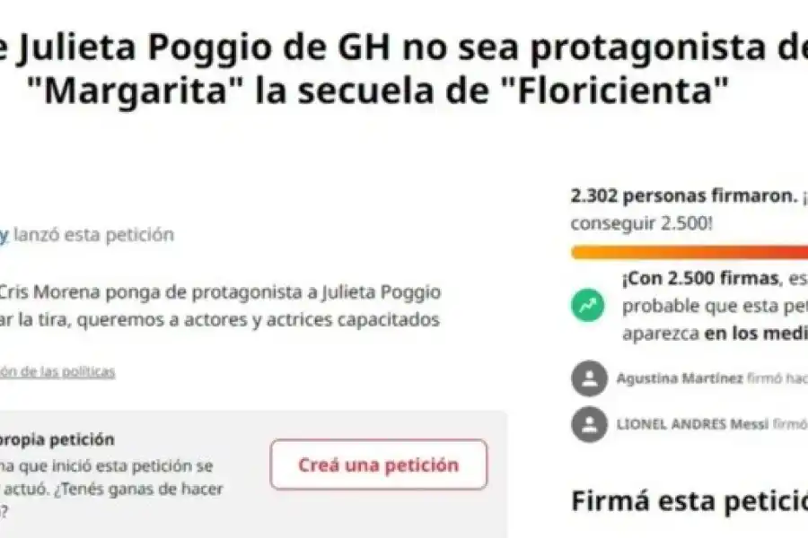 "No queremos que Cris Morena ponga de protagonista a Julieta porque va a arruinar la tira, queremos a actores y actrices capacitados", explicó la usuaria que lanzó la petición en el sitio de charge.org.