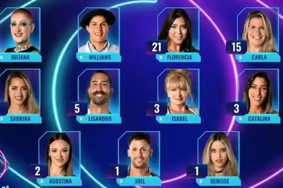 Después de Juliana y Williams, la más votada fue Florencia, quien cosechó 21 votos de parte de sus compañeros. A ella le siguieron Carla (15), Sabrina (7) y Lisandro (5). Este último recibió la espontánea de Catalina porque no le gusta la gente muy narcisista que se hace exponer”, entre otras cosas.