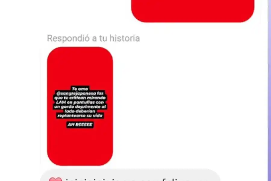 Ante la situación la China rompió el silencio en diálogo con un periodista mediante su cuenta de Instagram. “Te amo China, las que te critican mirando ‘LAM’ en pantuflas con un gordo deprimente al lado, deberían replantearse su vida”, le escribió Luis Corbacho en una historia.