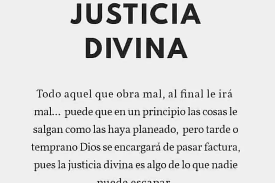 La modelo compartió un descargo en las historias de Instagram. “Todo aquel que obra mal le irá mal. Puede que en un principio las cosas le salgan como las haya planeado, pero tarde o temprano Dios se encargará de pasar factura, pues la justicia divina es algo de lo que nadie puede escapar”, relató.