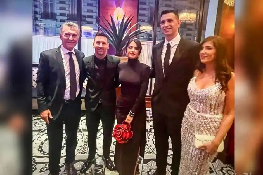 Tras los premios The Best en Francia, Leo Messi, capitán de la Selección Argentina y "Dibu" Martínez, el arquero campeón en Qatar 2022, y sus mujeres se tomaron una foto con Mauricio Macri.