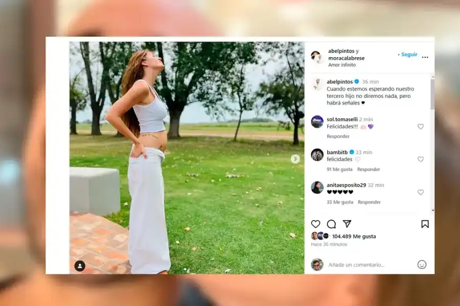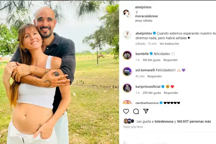 En un posteo en las redes, el cantante Abel Pintos y su pareja, Mora Calabrese, compartieron un sorpresivo anuncio. Todos los detalles.