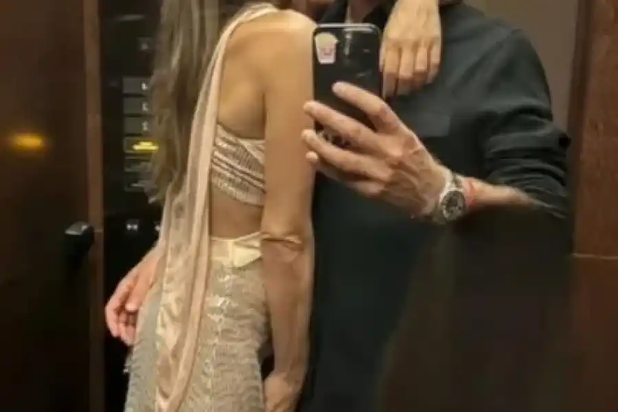La modelo y el empresario se fotografiaron juntos en un ascensor.