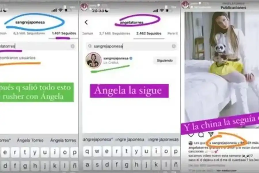 En las imágenes que compartió la periodista, se puede ver que Ángela sigue a la China pero ella no. Además, la ex de Rusherking le daba “me gusta” a las fotos de la hija de Gloria Carrá, lo que da a entender que en el pasado había una buena relación entre ambas.