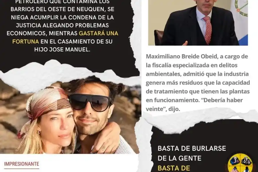 "¿Cuál es la postura de Nicole Neumann ante esta situación que enumeramos y el castigo que madres, niñxs y ancianxs padecen desde hace una década por el accionar de COMARSA SA? ¿Cual será su postura si está enterada que su suegro utilizará parte de la fortuna que se niegan a pagar por el daño ambiental y lo invertirá en la FIESTA DEL AÑO?", lanzó la organización, que recordó que la modelo suele hablar de su "compromiso con el cuidado del medioambiente".