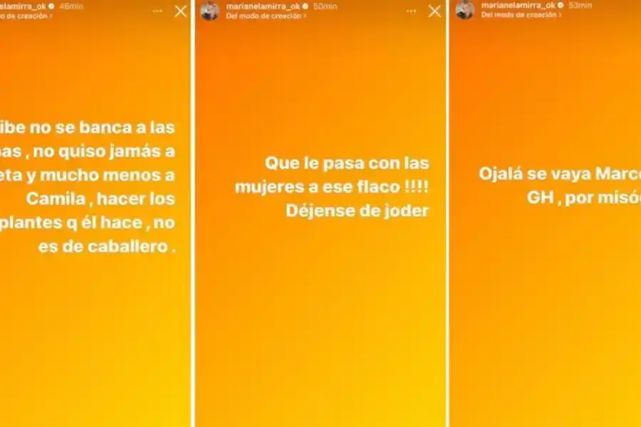 “El pibe no se banca a las minas. No quiso jamás a Julieta y mucho menos a Camila. Hacer los desplantes que él hace no es de caballero”, dijo en la primera de sus tres publicaciones en Instagram, y luego se preguntó: “¡¿Qué le pasa con las mujeres a este flaco?! Déjense de joder”.