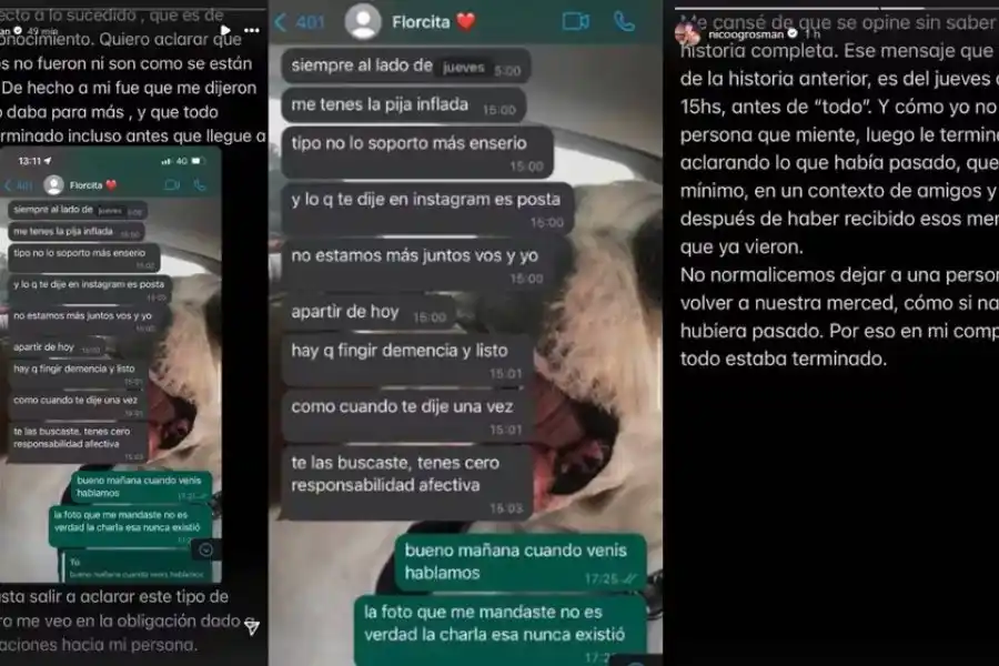 Nicolás Grosman habló por primera vez del escándalo con Flor Regidor, expuso un chat privado y ella lo cruzó con todo