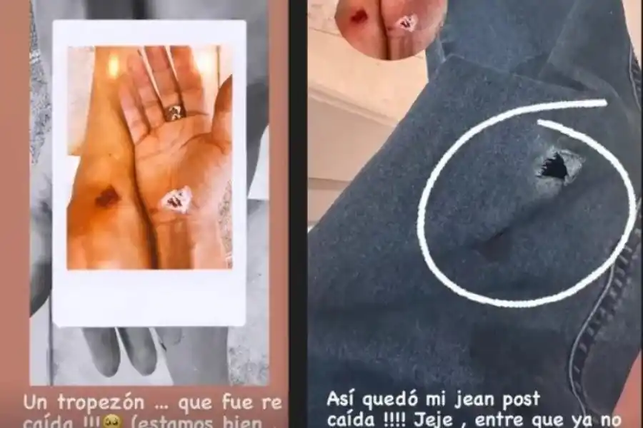 "Un tropezón que fue re caída", escribió junto a las fotografías para mostrar que se tomó con humor este hecho y que, por suerte, no hay motivos para preocuparse.