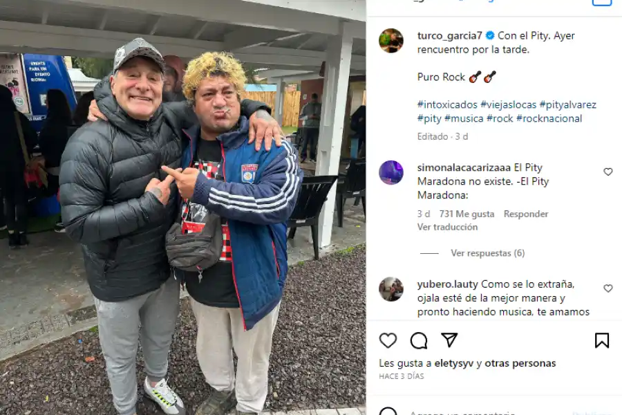 Hace unos días, “El Turco García” se reencontró con Pity Álvarez y se sacaron una foto que luego fue compartida por el exfutbolista mediante su cuenta de Instagram.