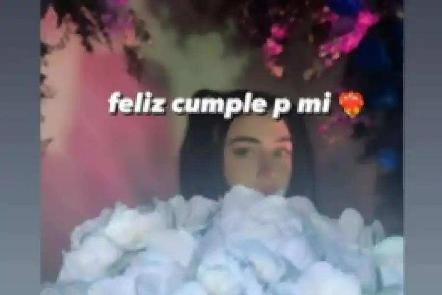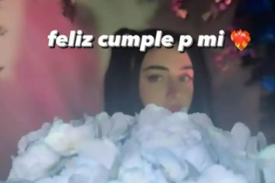La rosarina subió a su Instagram una foto de ella rodeada de rosas blancas y escribió: “Feliz cumple para mí", junto a un emoji de corazón con fuego. "Alguien me hizo un altar de cumpleaños", agregó sin mencionar al mexicano.