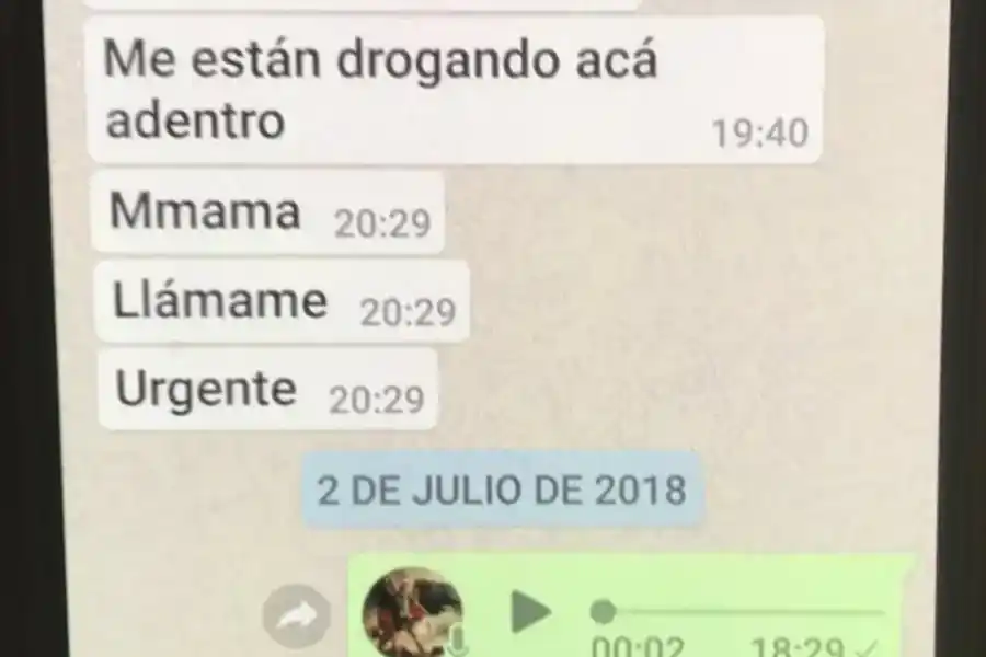 “Me están drogando acá adentro mamá, llamame urgente”, fue el pedido que le hacía Morena a Natacha desde la clínica. A lo que la mediática le responde: “Estoy hablando con tu médico”, al mismo tiempo que le envía una serie de audios.