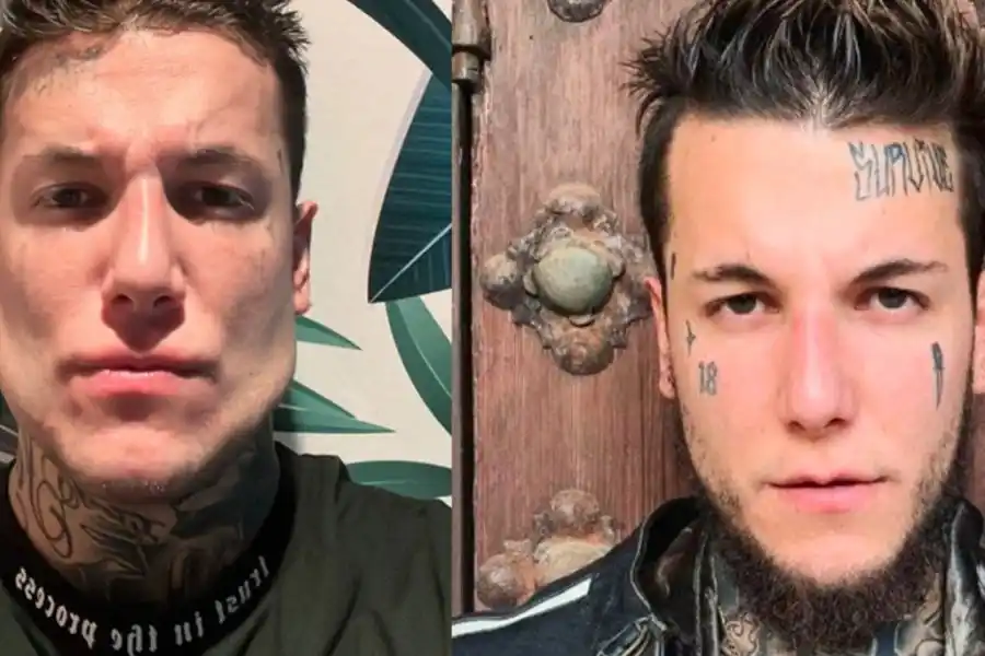 El hijo del exfutbolista Claudio Paul Caniggia compartió en sus stories diferentes imágenes en las que mostró el proceso de marcación mandibular a través del cual afinó su rostró y destacó las líneas de su mandíbula.