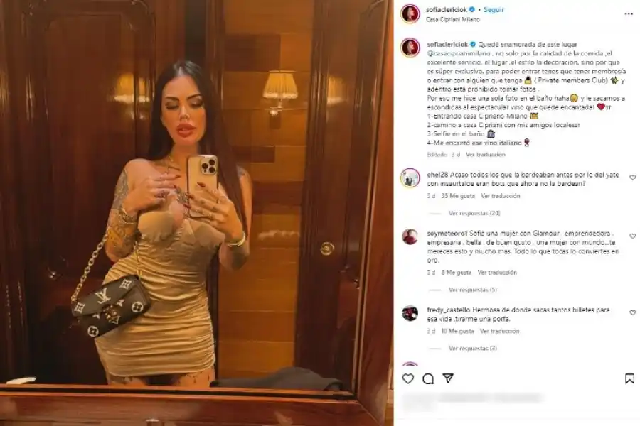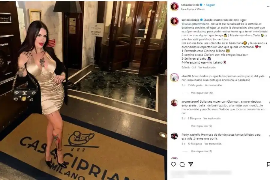 Para más datos, Clérici se mostró en un restaurante de Milán “donde solamente pueden entrar miembros. No se pueden sacar fotos, por eso es que se saca una foto en la entrada y después se saca una foto en el baño. Es un club exclusivo para gente VIP”, ampliaron en el programa porteño.