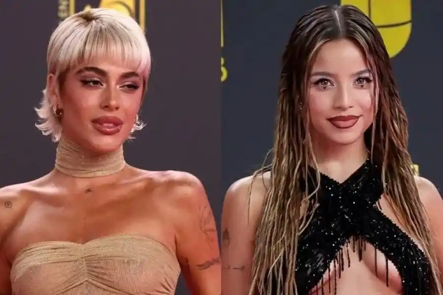 Las “originales” no pasaron desaparcibidas tampoco en la alfombra de los Premios Lo Nuestro, de acuerdo a lo que publicó Infobae. Tini lució un vestido dorado estilo choker de tela lurex (fibra sintética, elastizada y brillate). En tanto, la cantante de ‘Exclusive.mp3′ apareció en la alfombra roja con sus clásicos brillos debajo de los ojos pero con un pelo renovado. La joven dejó atras el lacio y lució un peinado torzado.