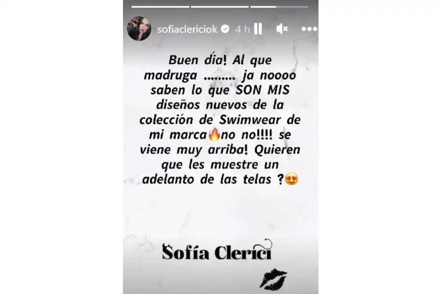 “Buen día, al que madruga, ja, no saben lo que son mis diseños nuevos de la colección de swimwear de mi marca. No, no, se viene muy arriba. ¿Quieren que les muestre un adelanto de las telas?”, escribió la empresaria en su cuenta de Instagram.