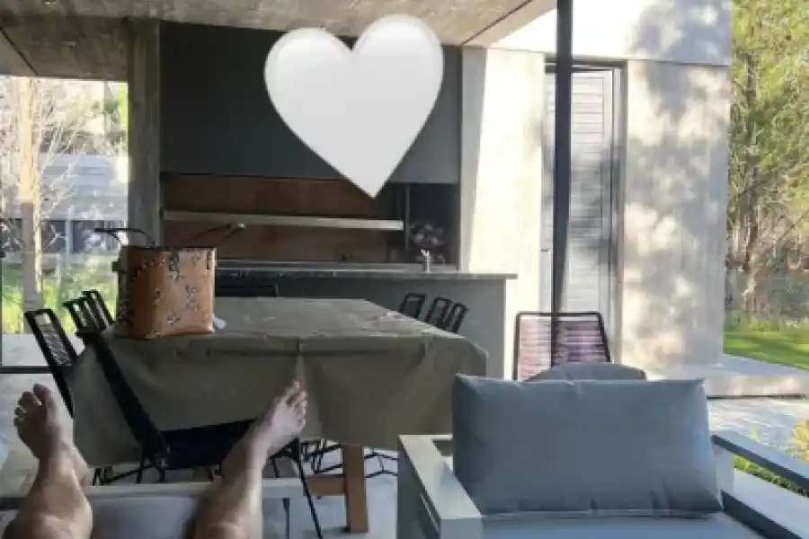 Por otra parte, en otra imagen acompañada junto a un corazón blanco se lo ve al ex jefe comunal acostado en un sillón y de fondo hay una parrilla.