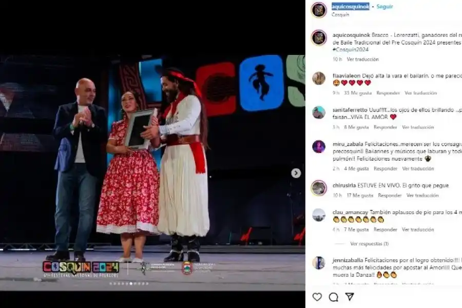 En la cuenta oficial de Instagram del tradicional evento cordobés, pueden leerse mensajes y felicitaciones por la futura boda: “Lo vi en vivo, qué manera de llorar” y “me hicieron erizar la piel” son algunos de los posteos.
