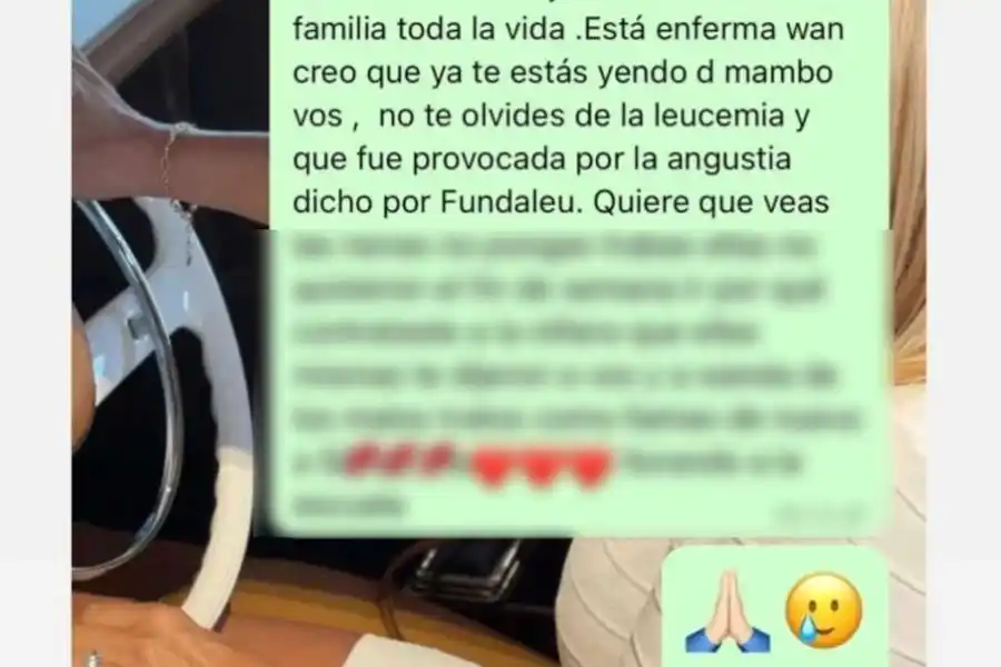 Además, expuso un dato que no se conocía sobre la enfermedad que tiene Wanda. “Está enferma Wan. Creo que ya te estás yendo de mambo vos. No te olvides de la leucemia que fue provocada por la angustia, dicho por Fundaleu”, remarcó la madre de la mediática. También, en ese chat, Colosimo explicó que las nenas no quisieron ir ese fin de semana por la niñera que había contratado Icardi, supuestamente.