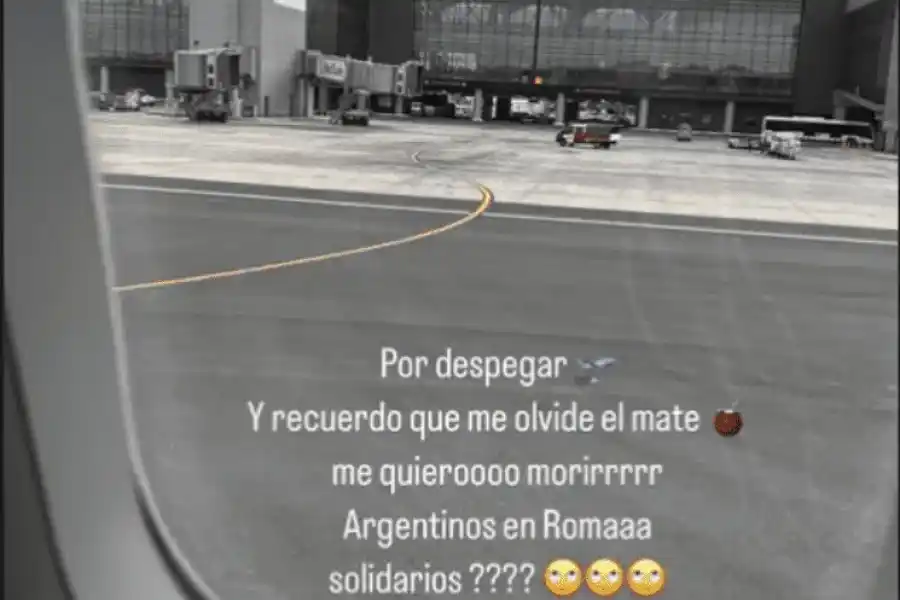 Por otro lado, Wanda Nara mostró en historias de Instagram que ya tomó el vuelo rumbo a Roma: "A bailar", escribió la esposa de Mauro Icardi. Sin embargo, en otro posteo dio a conocer el primer inconveniente con el que tendrá que lidiar en la ciudad italiana: "Por despegar, y recuerdo que me olvidé el mate. Me quiero morir... ¿Argentinos en Roma solidarios?", pidió la ayuda de algún turista argentino.