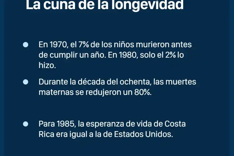 Al margen de las medidas que se tomaron en el ámbito de la salud pública, el otro eje fundamental es el estilo de vida que llevan las personas en Costa Rica. El descanso, una alimentación marcada por las frutas y verduras, el ejercicio y la reducción del estrés son algunos de los pilares que lograron mejorar la calidad de vida en el país centroamericano.