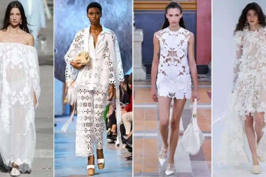 Admitimos que estos hermosos e intrincados diseños son un poco más sofisticados que los copos de nieve que hacíamos en la escuela con papel y unas tijeras. "Los diseñadores se volvieron astutos esta temporada", señaló Drapers, "y las pasarelas de París estaban repletas de encajes de gran tamaño y diseños de bordado inglés para la temporada primavera-verano".