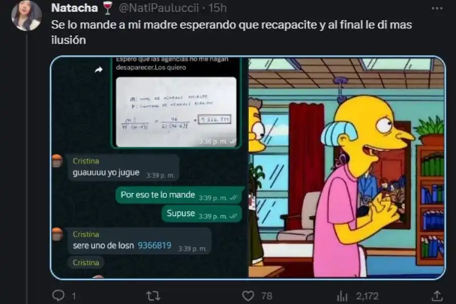El economista Federico Alonso intentó ofrecer una respuesta en la red social X, antes Twitter. Contó que, en respuesta a la consulta de un amigo, hizo un análisis matemático de cuántas chances hay de volverse millonario con el juego, que estos días tiene un pozo de 1250 millones de pesos en premios.