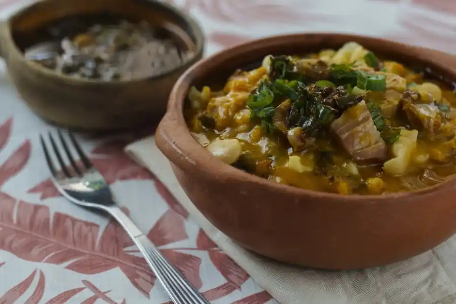 Otros ingredientes infaltables son el maíz partido, los porotos alubia y el responsable de unir todo: el zapallo. Molteni recomienda usar zapallo plomo, ese que parece que tuviera gajos, grande y redondo. Y no lo elige por capricho, sino porque esta variedad “se desarma mucho más rápido”.