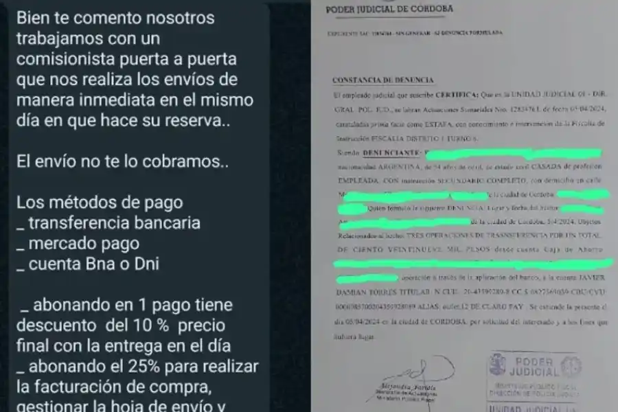 La damnificada señaló que comenzó a sospechar que era una estafa cuando recibió un llamado telefónico a pocas horas del horario de entrega pactado. Se trataba de un aparente trabajador el cual sostenía que no podía concretar la entrega porque restaban abonar $5 mil correspondientes a gastos de envío.
