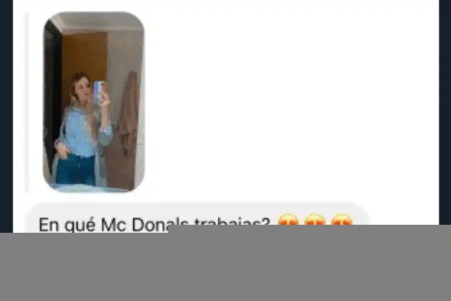 Hasta esa parte de la conversación, la joven creyó que el seguidor le respondería "algo lindo", pero en realidad le hizo una pregunta que la descolocó: "¿Esa no es la ropa del McDonald's?", seguido de emojis de caritas pensantes.