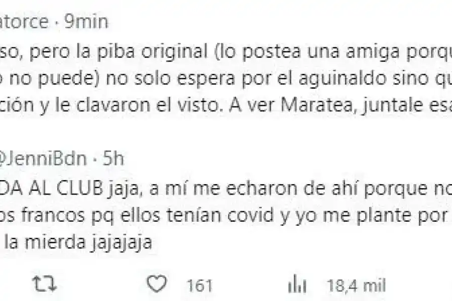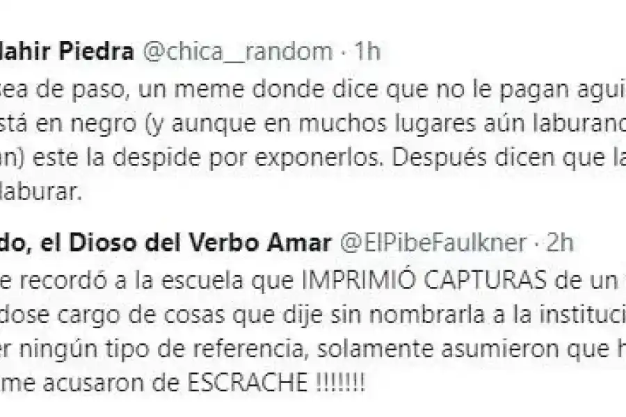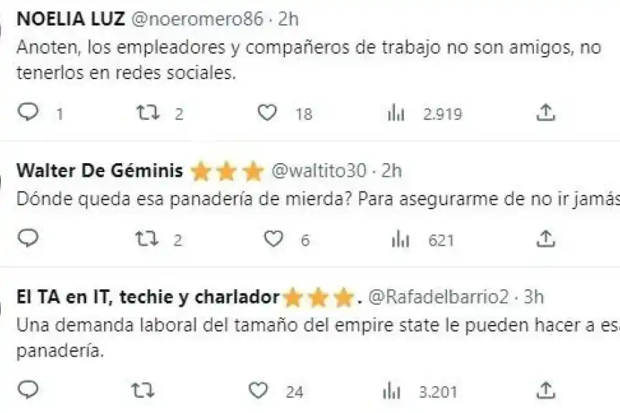 El episodio fue compartido en Twitter por la usuaria "soyjuanitaok", amiga de Tamara, quien denunció el accionar de los jefes de la chica y rápidamente logró el respaldo para la joven despedida por parte de los usuarios de la red social del pajarito, que indignados hicieron viral la publicación.